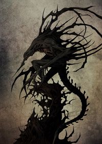 Entromorph are massive, standing at around 9'0 and weighting around 4 tons. Their body is covered in black chitin-like skin, their mouth is very large and wide with a disturbing number of extremely sharp teeth. They two pairs of arm, on their main pair they have large sharp claws capable of slicing an humanoid in one strike while their secondary pair have precise digits to write and manipulate objects. An entromoprh face is very elongated and they have a single very large horn located under their face on their 'chin'.